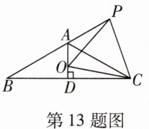13 [2025苏州临湖实验中学月考]如图,$\triangle ABC$是等腰三角形,$AB = AC$,$∠BAC = 120^{\circ}$,$AD\perp BC于点D$,$P是BA$延长线上一点,$O是线段AD$上一点,$OP = OC$。给出下列结论:①$∠APO + ∠DCO = 30^{\circ}$;②$∠APO = ∠DCO$;③$\triangle OPC$是等边三角形;④$AB = AO + AP$。其中正确结论的序号是______