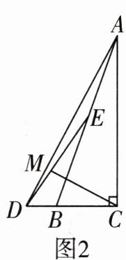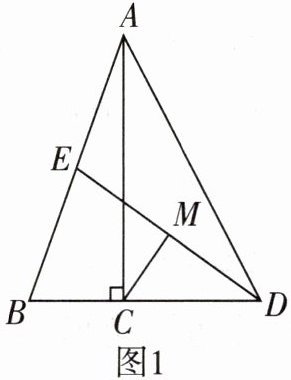 8 推理能力[2024苏州昆山期中]如图1,已知$△ABC$为直角三角形,$∠BCA= 90^{\circ }$,在BC的延长线上取一点D,使得$CD= \frac {1}{2}AB$,E是AB的中点,连接DE,M为ED的中点,连接CM,AD.