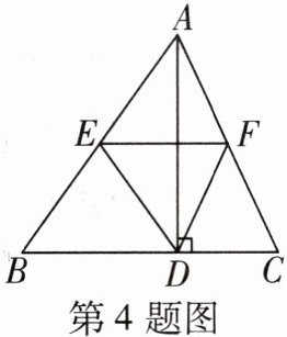 4 如图,$△ABC$中,AD是边BC上的高,E,F分别是AB,AC的中点.若$AB= 10,AC= 8$,则四边形AEDF的周长为