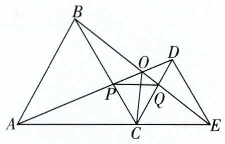 2 如图,在等边三角形ABC的边AC的延长线上取一点E,以CE为边作等边三角形CDE,使点B,D在AE的同侧,AD与BE交于点O,AD与BC交于点P,BE与CD交于点Q,连接PQ,OC.