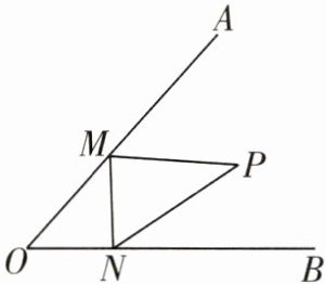6 80 如图,作点P关于OA,OB的对称点P₁,P₂,连接OP₁,OP₂,P₁P₂,则当M,N是P₁P₂与OA,OB的交点时,△PMN的周长最小,连接P₁P,P₂P.