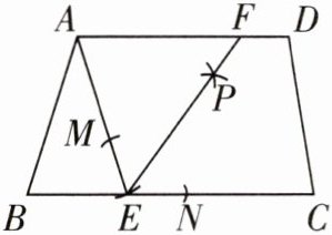 5 [2024辽宁中考]如图,四边形ABCD中,AD//BC,AD>AB,AD= a,AB= 10,以点A为圆心,AB的长为半径作弧,与BC相交于点E,连接AE.以点E为圆心,适当长为半径作弧,分别与EA,EC相交于点M,N,再分别以点M,N为圆心,大于$\frac{1}{2}$MN的长为半径作弧,两弧在∠AEC的内部相交于点P,作射线EP,与AD相交于点F,则FD的长为______.(用含a的代数式表示)