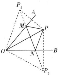 ∴∠P₁OP=2∠MOP,OP₁=OP,P₁M=PM,∠OP₁M=∠OPM.同理,∠P₂OP=2∠NOP,OP=OP₂,∠OP₂N=∠OPN,