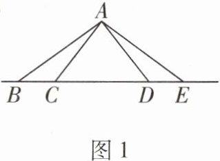 (1)解题思路:以点A为圆心,AB的长为半径画弧,交直线BC于一点,该点为点E,以点A为圆心,AC的长为半径画弧,交直线BC于一点,该点为点D,连接AD,AE.