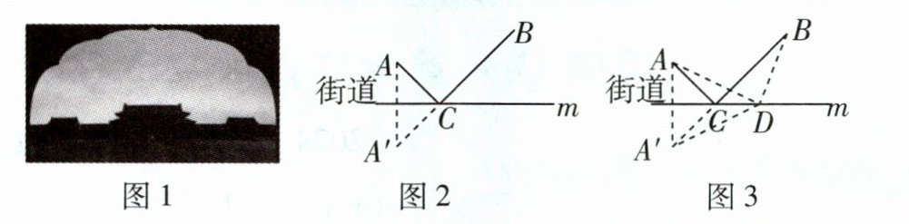如图 2,作点 A 关于直线 m 的对称点 A',连接 A'B 与直线 m 交于点 C,点 C 就是所求的位置。