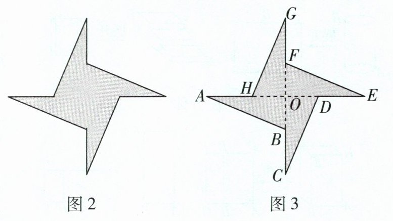 (4)在海港C的水平地面上有许多图案,图2是 其中之一,它可以看成是由四个全等的直角 三角形无缝隙无重叠地拼接在一起的.如图 3,若图形ABCDEFGH的周长为80 m,$OB= 5m$,求该图形的面积S.