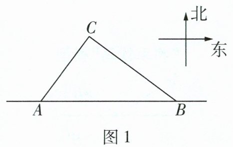 台风是以台风中心为圆心,可以在周围上千 米的范围内形成的极端气候,有极强的破坏力. 某 市夏季受到台风天气的影响,如图1,点A为该市的某观测站,点C为该市的某海港,此时观测 到有一台风中心B在观测站A的正东方向正继续向西移动.