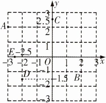 解:A(-3,2),B(2,-1),C(0,2.5),D(-2,-1.5),E(-2.5,0).