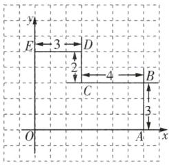 6 解:答案不唯一,建立如图所示的平面直角坐标系,告诉陈师傅各关键点的坐标:O(0,0),A(7,0),B(7,3),C(3,3),D(3,5),E(0,5).把这些关键点O,A,B,C,D,E,O顺次连接,可得到广告模板草图.(答案不唯一)
