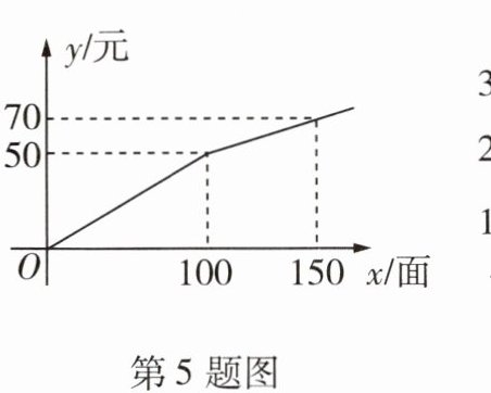 5 某复印店复印收费 $ y $(元)与复印面数 $ x $(面)之间的函数图象如图所示,从图象中可以看出,复印超过 100 面的部分,每面收费