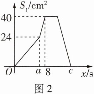 ∴$S_{\triangle APD}=\frac{1}{2}AD\cdot AP=\frac{1}{2}×8a=24$,解得a=6.由题图2知,8 s时点P与点B重合,则6+(8-6)b=10,解得b=2.由题图2知,8 s至c s,点P从点B运动到点D,速度为2 cm/s,则2(c-8)=8+10,解得c=17.