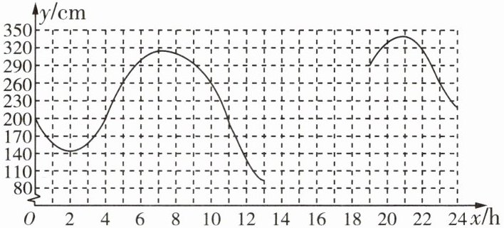 (3)根据图象,当潮水高度超过260 cm时,5<x<10或18<x<23,即当天5时~10时或18时~23时适合货轮进出此港口.