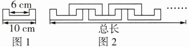 9 [2024南通启东期末]图1是一个轴对称图形,且每个角都是直角,长度如图1所示.小明用x个这样的图形,按照如图2所示的方法玩拼图游戏,两两相扣,相互间不留空隙,则图形的总长度y与图形个数x之间的函数表达式为____.