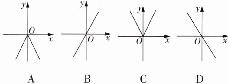 9 定义运算:$a*b= \left\{\begin{array}{l} ab(b>0),\\ -ab(b≤0).\end{array} \right. 如1*(-2)= -1×(-2)= 2$. 函数$y= 2*x$的图象大致是(