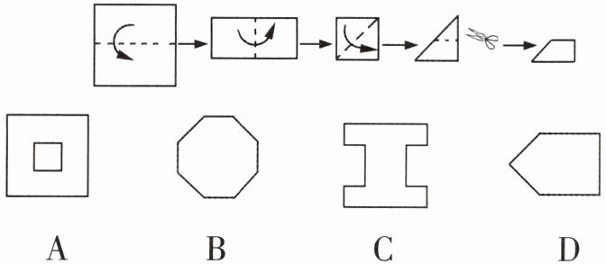 1 如图,把一个正方形按如图所示的方式对折三次后沿虚线剪开,则展开后所得的图形是(