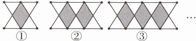 8 [2023 十堰中考]用火柴棍拼成如图图案,其中第①个图案由 4 个小等边三角形围成 1 个小平行四边形,第②个图案由 6 个小等边三角形围成 2 个小平行四边形形……$$若按此规律拼下去,则第 $ n $ 个图案需要火柴棍的根数为______.(用含 $ n $ 的式子表示)
