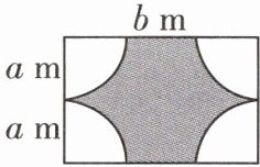 解:长方形空地的面积为2ab$m^2$,四个扇形花坛的面积为$4×\frac{1}{4}\pi a^2=\pi a^2$($m^2$), 所以中间阴影部分(种草区域)的面积为$(2ab - \pi a^2)m^2$,因此美化这块空地共需资金$[200×\pi a^2 + (2ab - \pi a^) × (2ab - \pi a^)]$元.