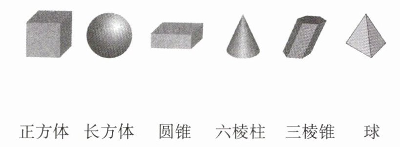 正方体 长方体 圆锥 六棱柱 三棱锥 球