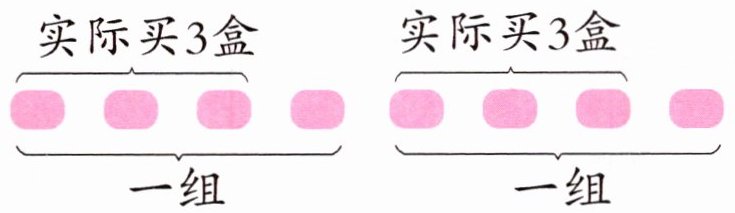例 甜品店开展“买三送一”的促销活动,规定每买3盒桃花酥送1盒桃花酥,每盒桃花酥9元。王阿姨购得8盒桃花酥,实际要付多少钱?