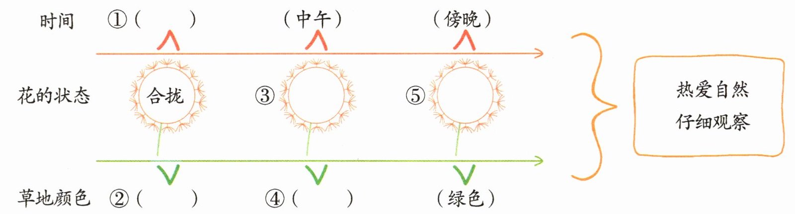 1. 4 2. ①早上 ②绿色 ③张开 ④金色 ⑤合拢