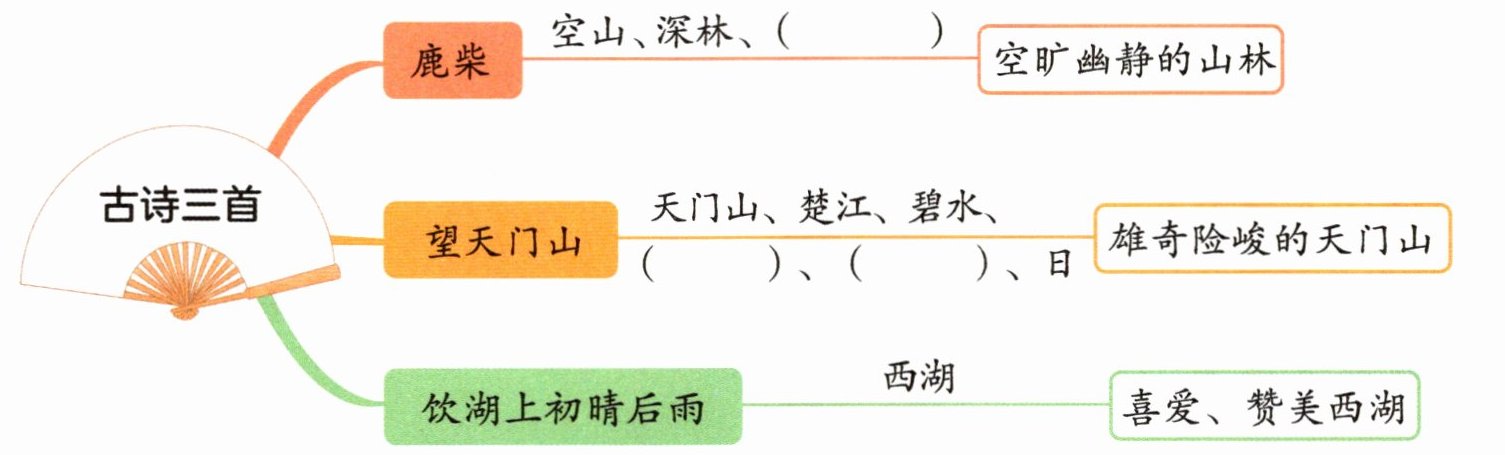 2. 读完课文后,我能简单梳理出古诗中描写的景物。