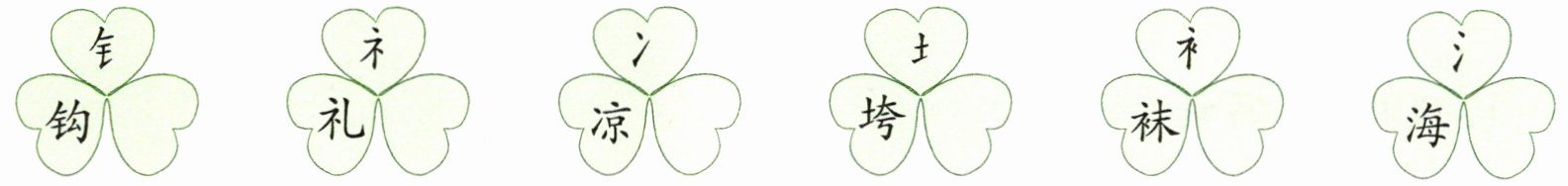 三 照样子,各写一个带有下列偏旁的汉字,并写一写你的发现。