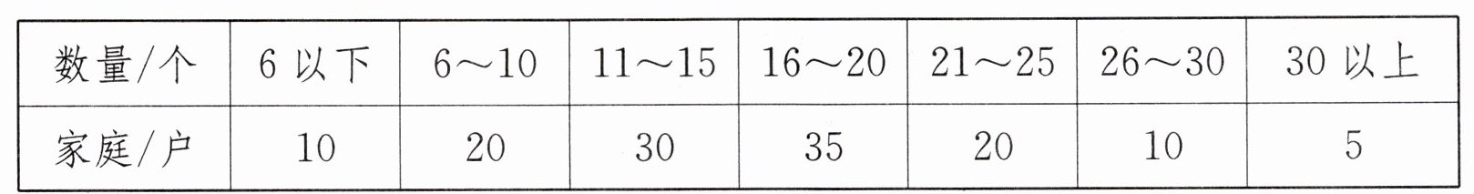 (1)丢弃塑料袋的数量在( )个范围内的家庭最多。