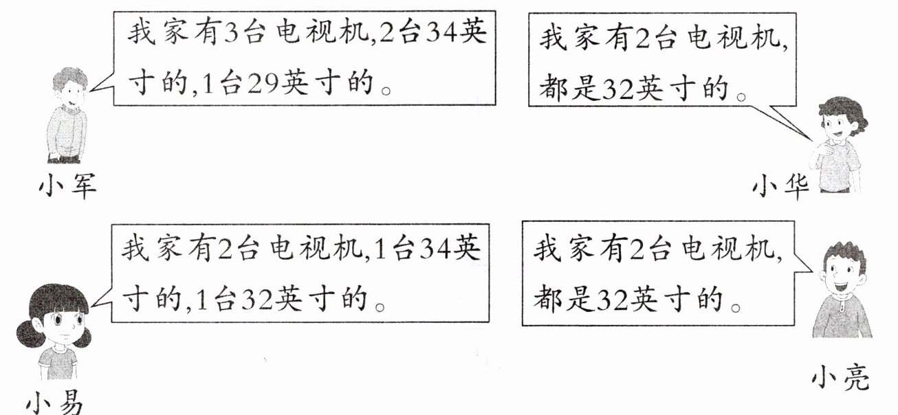 九、下面是对四位同学家庭拥有电视机情况的调查,请你根据要求填写统计表。