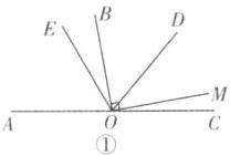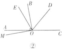 ②如图②,当OM在AC下方时,同理可得$\angle BOE=20^{\circ}$.因为$\angle MOB=90^{\circ}$,所以$\angle MOE=\angle MOB-\angle BOE=70^{\circ}$.综上,$\angle MOE$的度数为$110^{\circ}$或$70^{\circ}$.