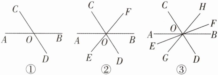(3)根据图①、②、③中直线的条数与对顶角、邻补角的对数之间的关系,探究:若有n条直线相交于一点,则可形成多少对对顶角?多少对邻补角?