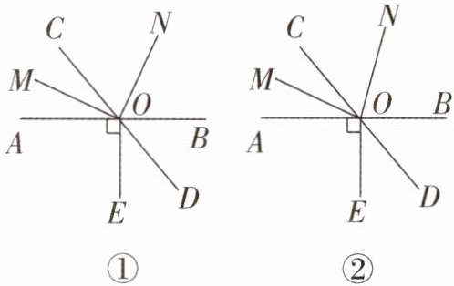 (2)如图②,若$\angle CON= \frac{1}{3}\angle EON(\angle EON\lt180^{\circ})$,$\angle MON = 80^{\circ}$,求$\angle BON$的度数。