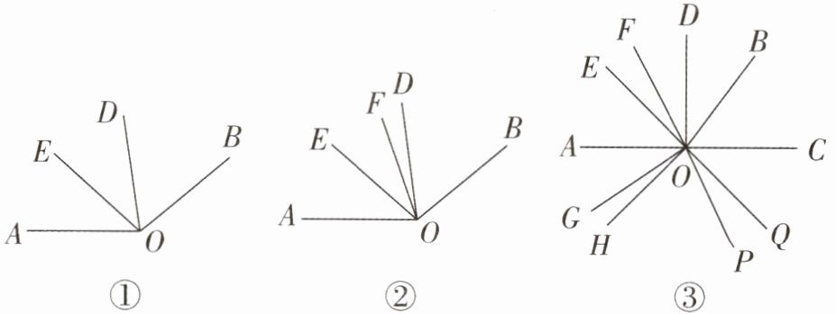 3. 已知:射线$OD在\angle AOB$内部,$OE平分\angle AOD$。