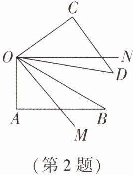 2. (2024·合肥期末)一副三角尺 $AOB$ 与 $COD$ 如图摆放, $∠AOB = 60^{\circ}, ∠COD = 45^{\circ}$, $ON$ 平分 $∠COB$, $OM$ 平分 $∠AOD$, 则 $∠MON$ 的度数为 ______