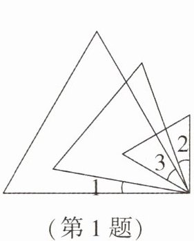 1. (2024·金华期末)我们知道等边三角形的每个内角都是 $60^{\circ}$. 如图, 将三个大小不同的等边三角形的一个顶点重合放置, 若 $∠1 = 10^{\circ}, ∠2 = 20^{\circ}$, 则 $∠3$ 的度数为 (