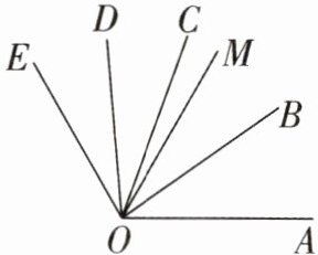 2. 如图,$ OB $ 是 $ \angle AOC $ 的平分线,$ OD $ 是 $ \angle COE $ 的平分线。