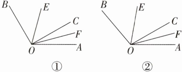 1. 如图,已知 $ \angle AOB $ 内部有三条射线,其中 $ OE $ 平分 $ \angle BOC $,$ OF $ 平分 $ \angle AOC $。