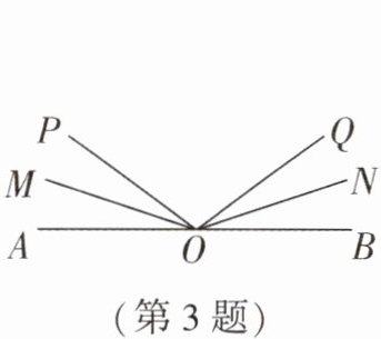3. (2024·泰州期末)如图,A,O,B在一条直线上,射线OP从OA出发,绕点O顺时针旋转,同时射线OQ也以相同的速度从OB出发,绕点O逆时针旋转,当OP,OQ分别到达OB,OA时,运动停止.已知OM,ON分别平分$\angle AOP和\angle BOQ$,设$\angle MON= x^{\circ},\angle POQ= y^{\circ}$,则x与y之间的数量关系为
