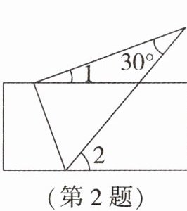 2. (2025·盐城期末) 如图,将直尺与含30°角的三角板摆放在一起,若∠1= 20°,则∠2的度数是