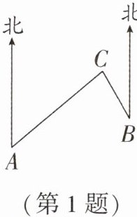 1. (2025·苏州期末) 如图,点C在点A北偏东50°方向上,点C在点B北偏西30°方向上,则∠ACB的度数为