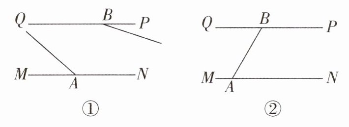 5. 某河段两岸安置了两座可旋转探照灯A,B。如图①②所示,假如河道两岸是平行的,PQ//MN,且∠BAM= 2∠BAN,灯A射线从AM开始顺时针旋转至AN便立即回转,灯B射线从BP开始顺时针旋转至BQ便立即回转,两灯不停交叉照射巡视,且灯A转动的速度是每秒2度,灯B转动的速度是每秒1度。