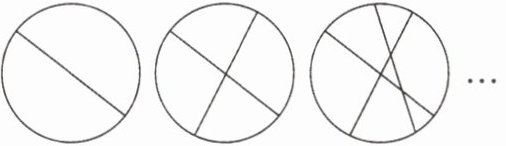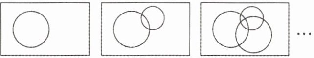 个区域.(2)如图,1个圆可以将平面分成2个区域;2个圆时,要使分成的区域尽量多,2个圆相交将平面分成4个区域;3个圆时,要使分成的区域尽量多,第3个圆与前2个圆都相交被分成了$2×(3-1)= 4$(条)圆弧,将平面至多分成了$4+4= 8$(个)区域……以此类推,n个圆可以将平面分成