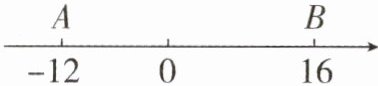 3. 如图,A,B,C三点在数轴上,点A,B在数轴上表示的数分别为-12,16(设定:数轴上A,B之间的距离记为AB)。
