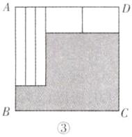 3. (2025·镇江期末)如图,有三张正方形纸片$A$,$B$,$C$,它们的边长分别为$a$,$b$,$c$,将三张纸片按图①、图②两种不同方式放置于同一个长方形中,则图①与图②中的阴影部分周长的差为