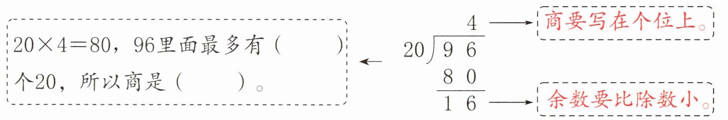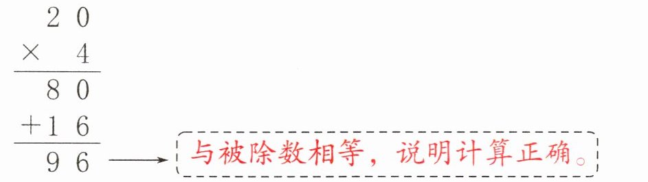 根据“除数×商+余数= 被除数”验算有余数的除法。