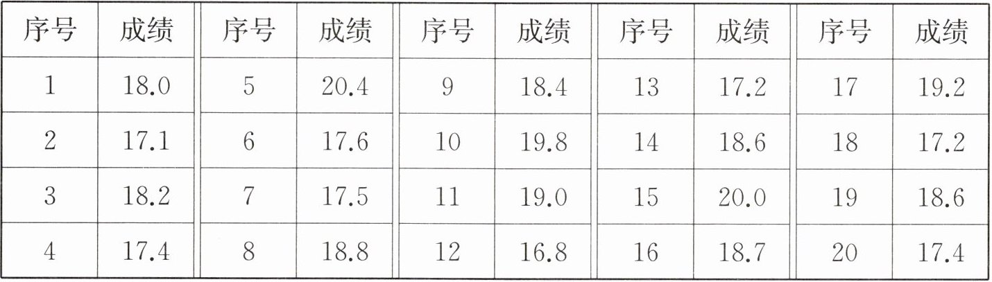(2)如果用的时间不多于17.6秒为优秀,17.7~18.8秒为良好,那么成绩达到优秀的有( )人,达到良好的有( )人。