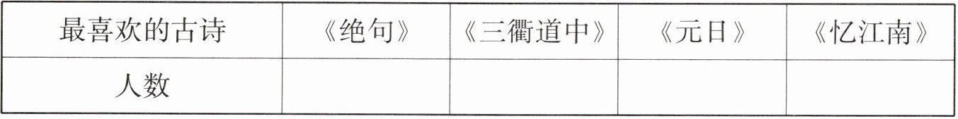 一、刘老师调查了三(1)班部分同学最喜欢的古诗情况,调查情况如下。