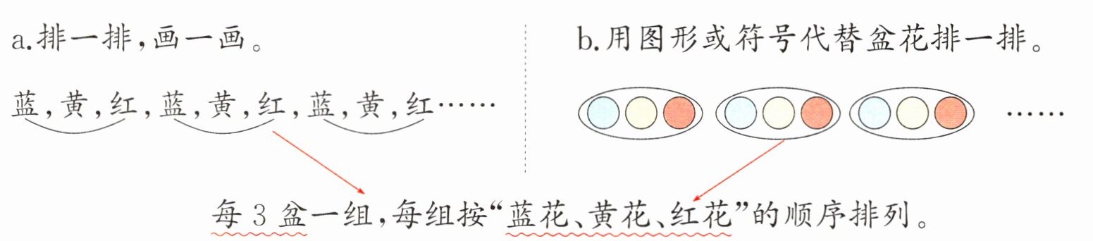 (2)盆花是按蓝、黄、红的顺序循环排列的。