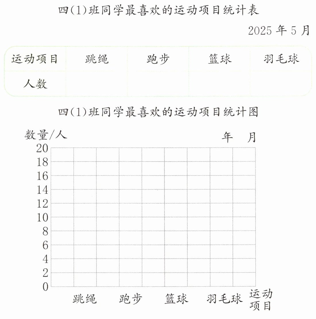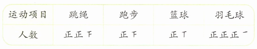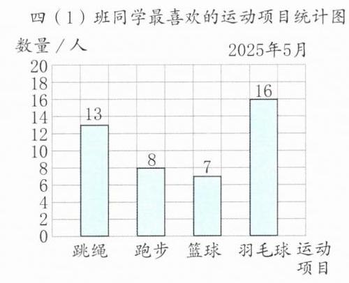 1. 在“我最喜欢的运动项目”调查中,四(1)班同学的调查结果如下。(每人限选一项)