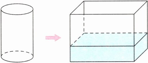 5. 如图,下面左边的圆柱体容器的容量是2升,把下面左边的圆柱体容器装满水后倒入下面右边的长方体容器内,水只占了一部分。估一估,这个长方体容器的容量约是多少升?