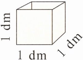 解:正方体容器棱长为1dm,体积为$1×1×1 = 1$(立方分米),1立方分米=1升,所以右边容器能装1升水。大桶容量为$1×5 = 5$升。